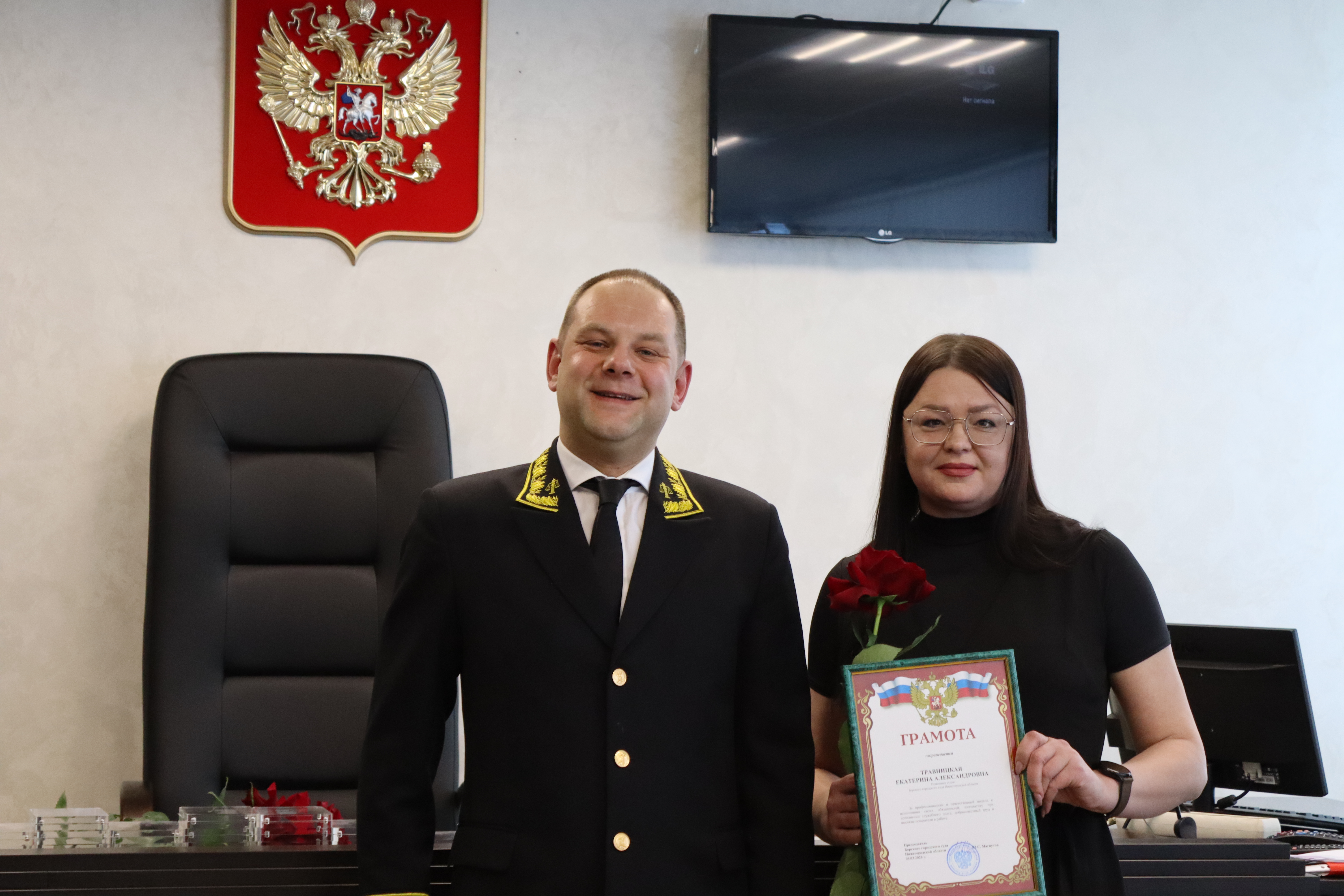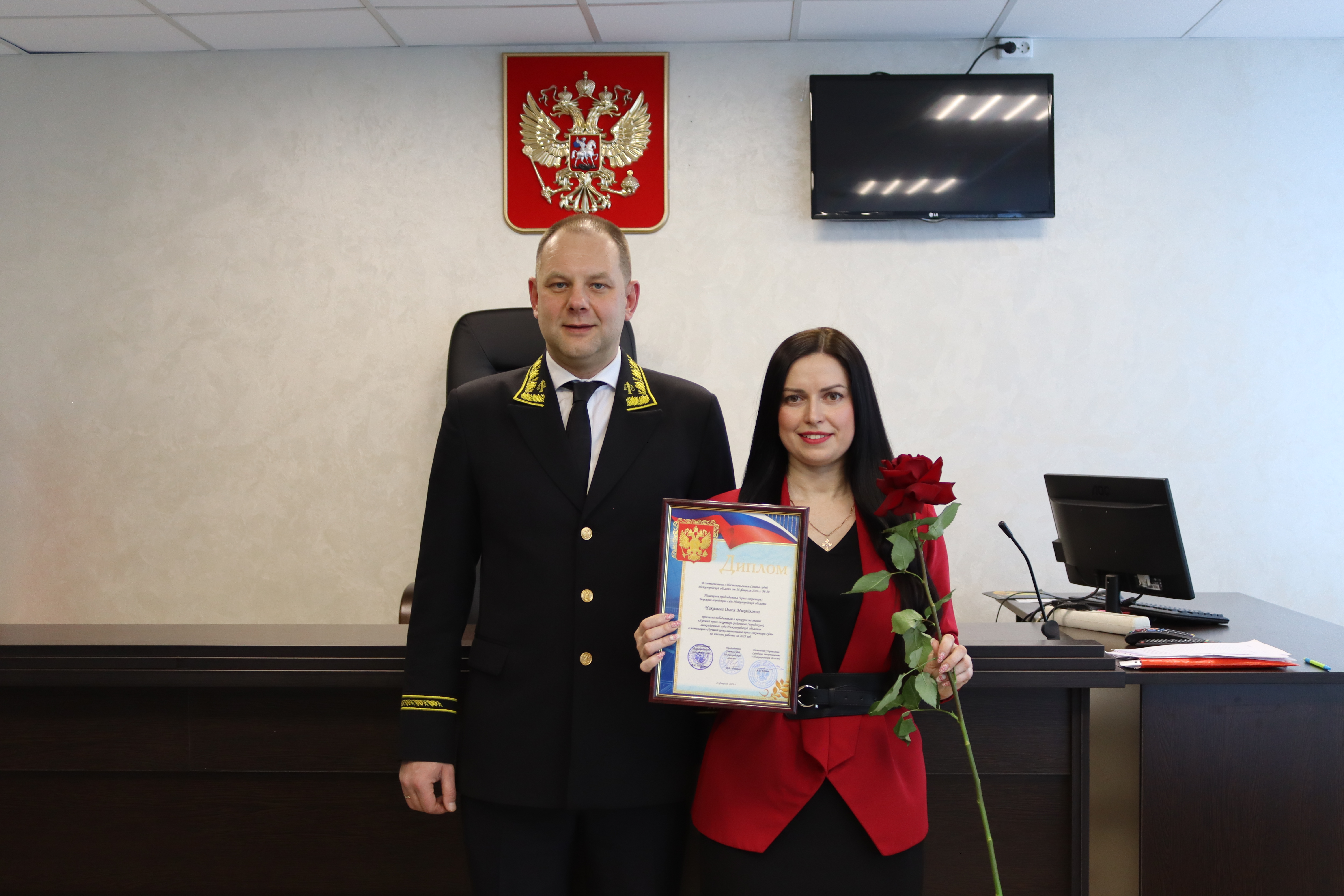 6 марта 2026 года в Борском городском суде Нижегородской области состоялось торжественное собрание, посвящённое празднованию Международного женского дня - 8 Марта. С поздравительными словами к коллективу обратился председатель суда Юрий Магнутов. Он поздравил женщин с наступающим праздником, выразил искреннюю благодарность за профессионализм, ответственный подход к исполнению служебных обязанностей, высокие показатели в работе и пожелал крепкого здоровья, счастья, благополучия и весеннего настроения. Особые слова признательности прозвучали в адрес заместителя председателя Борского городского суда Нижегородской области Марии Бариновой, которую поздравили с выходом в почетную отставку. Отмечена грамотой безупречная и эффективная служебная деятельность помощника судьи Борского городского суда Нижегородской области Екатерины Травницкой, которая достигла повышения по службе и назначения на должность помощника судьи Нижегородского областного суда. Также в ходе мероприятия по итогам работы за 2025 год лучшим сотрудникам аппарата Борского городского суда Нижегородской области вручены дипломы Совета судей Нижегородской области. По итогам конкурса на звание «Лучший работник аппарата районного (городского), межрайонного суда Нижегородской области» (среди судов, имеющих более пяти составов судей) почетным дипломом удостоена начальник отдела приема граждан Борского городского суда Нижегородской области Ирина Бахтина. Победителем в конкурсе на звание «Лучший пресс-секретарь районного (городского) межрайонного суда Нижегородской области» в номинации «Лучший цикл материалов пресс-секретаря суда» признана помощник председателя (пресс-секретарь) Борского городского суда Нижегородской области Олеся Чикалина. Торжественное собрание прошло в тёплой и доброжелательной атмосфере, став прекрасной возможностью выразить слова благодарности женщинам за их труд, профессионализм и преданность выбранному делу.