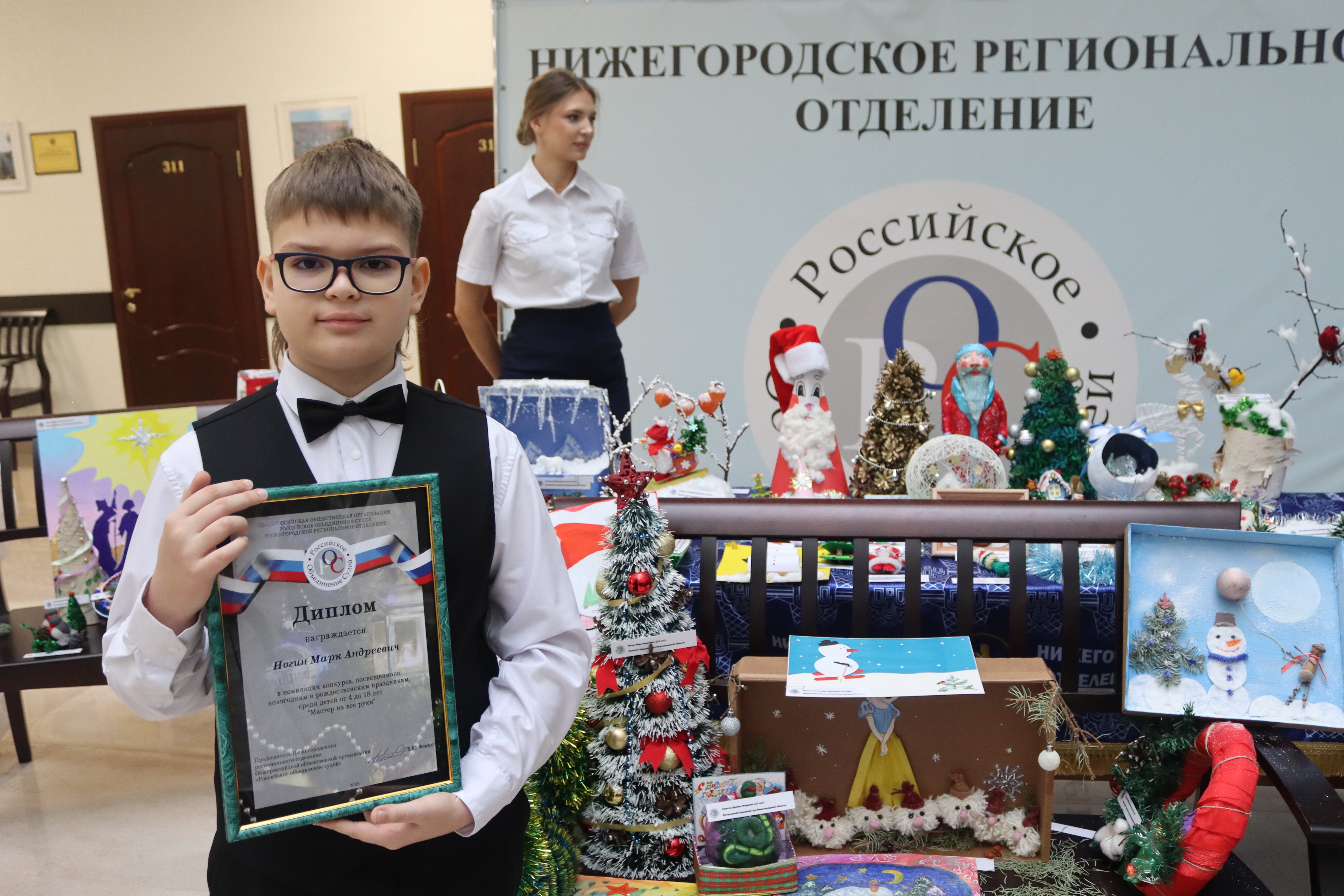 31 января 2025 года в конференц-зале Нижегородского областного суда состоялась торжественная церемония награждения участников конкурса творческих работ новогодней и рождественской тематики. Организатор конкурса – Нижегородское региональное отделение Российского объединения судей. Дети действующих судей, судей в почетной отставке, работников аппарата судов региона читали стихи, исполняли песни, подготовили художественные композиции. Всего в конкурсе приняли участие 148 детей. Ребята прислали на конкурс 17 видео, 78 поделок и 73 рисунка. От Борского городского суда Нижегородской области в номинации конкурса "Мастер на все руки" принял участие сын помощника председателя суда Олеси Чикалиной - Марк Ногин, 2014 года рождения. На церемонии награждения по итогам конкурса юные участники получили дипломы и памятные подарки. Председатель НРО РОС, исполняющий обязанности председателя судебной коллегии по административным делам Виктор Фомин поздравил конкурсантов, пригласил ребят и их родителей к участию в предстоящем шахматном турнире, анонсировал конкурс творческих работ к 80-летию Победы. Видеорепортаж о торжественной церемонии награждения доступен по ссылке. *** Рисунки, поделки, видеоматериалы размещены на сайте НРО РОС nnros.ru, экспозиция творческих работ - в стенах Нижегородского областного суда. ![]()